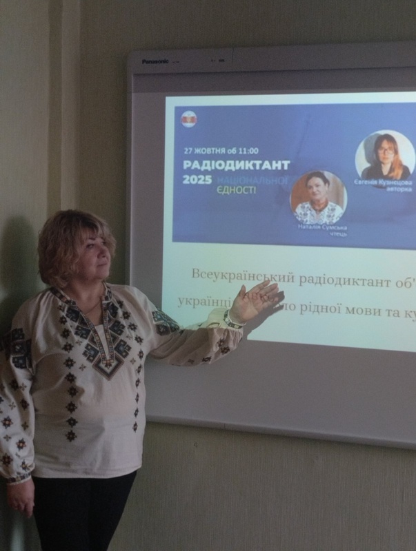 27 жовтня 2025 року студенти 11-о, 11-ф, 11-м, 11-ек груп, викладачі кафедри української та іноземних мов, кафедри менеджменту об’єдналися навколо українського слова, взявши участь у Всеукраїнському радіодиктанті національної єдності.