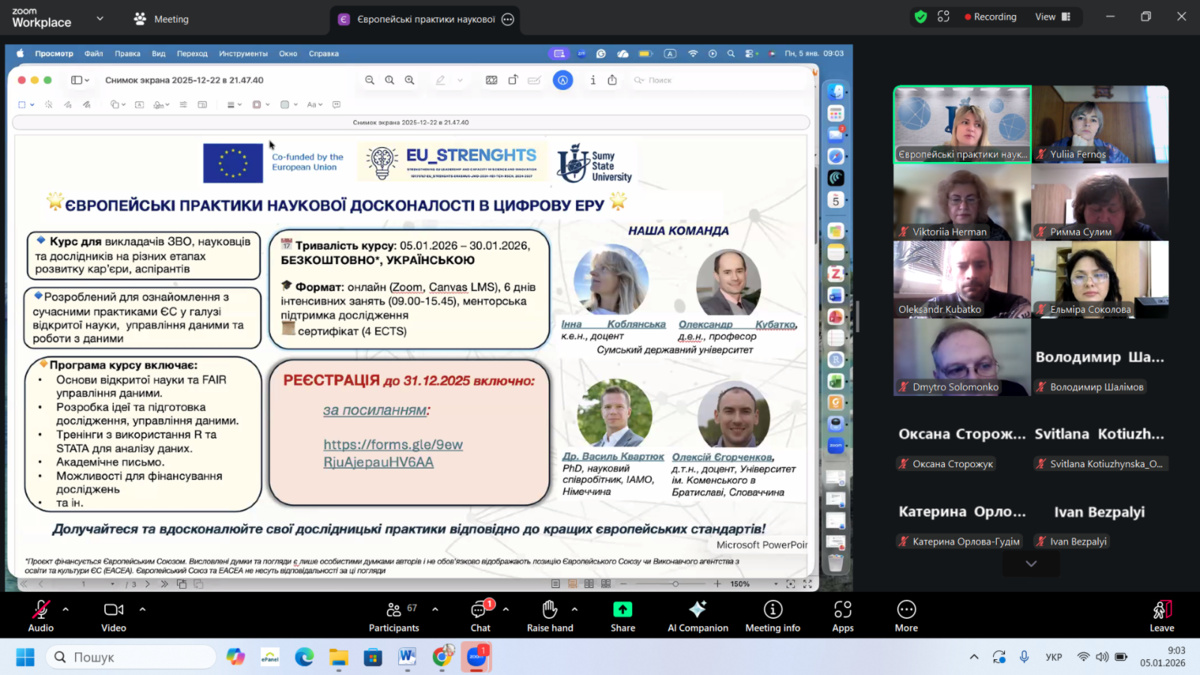 Участь доцента Уманського національного університету Юлії Фернос у міжнародному навчальному курсі «Європейські практики наукової досконалості в цифрову еру»